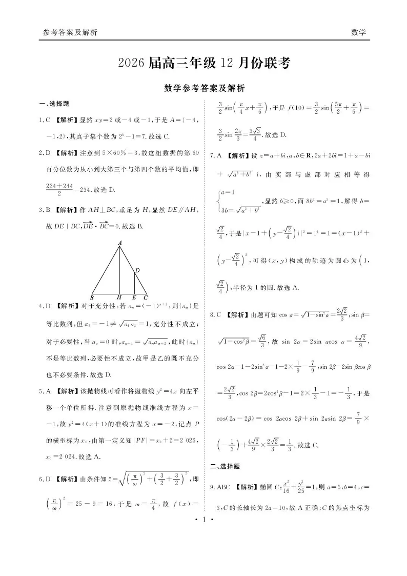 广东省衡水金卷2026届高三年级12月份联考 数学答案.pdf