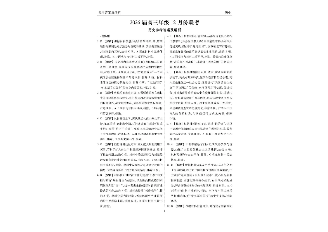 广东省衡水金卷2026届高三年级12月份联考 历史答案.pdf