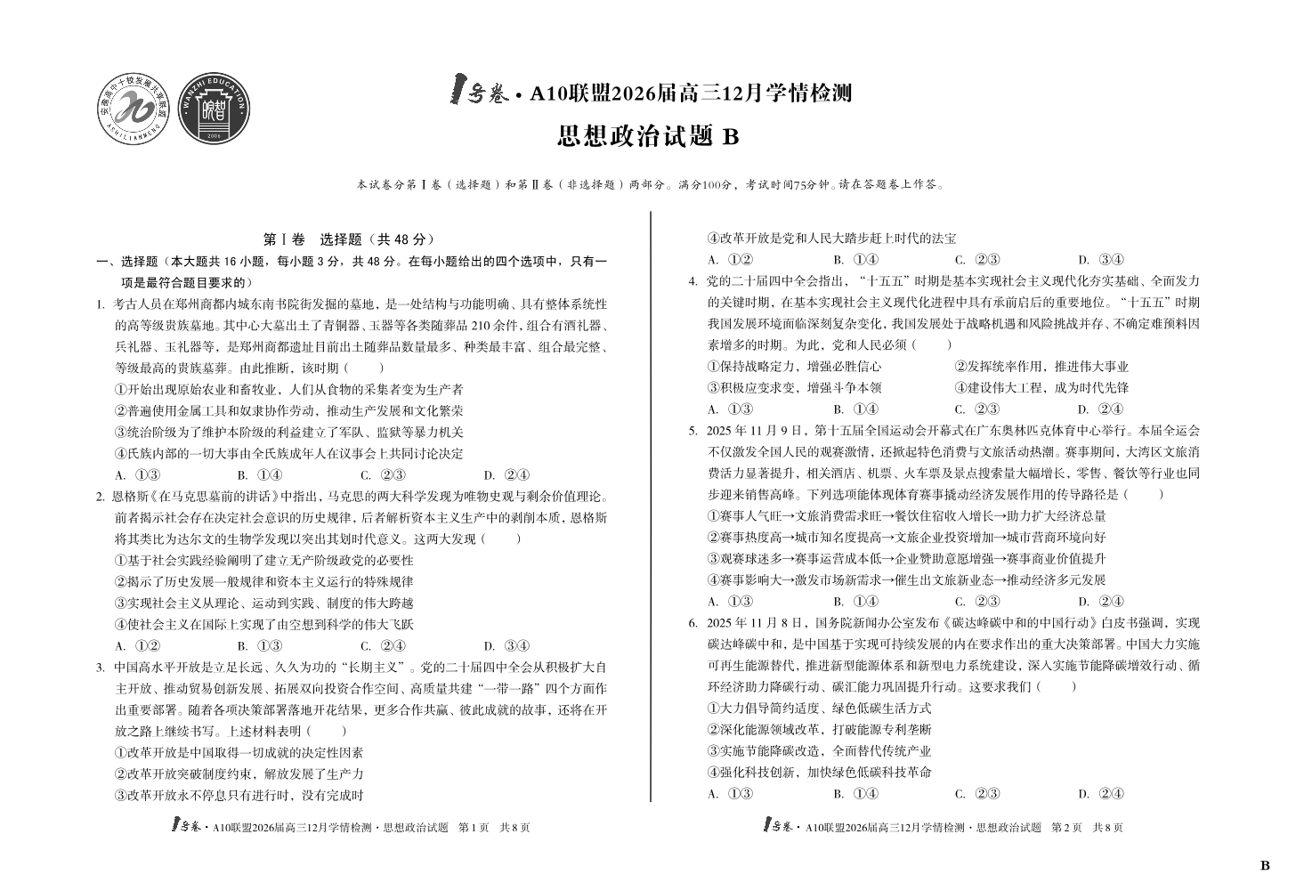 1号卷·A10联盟2026届高三12月学情检测 政治B.pdf
