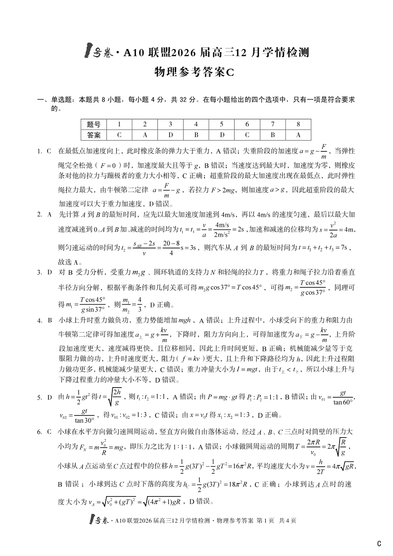 1号卷·A10联盟2026届高三12月学情检测 物理C答案.pdf