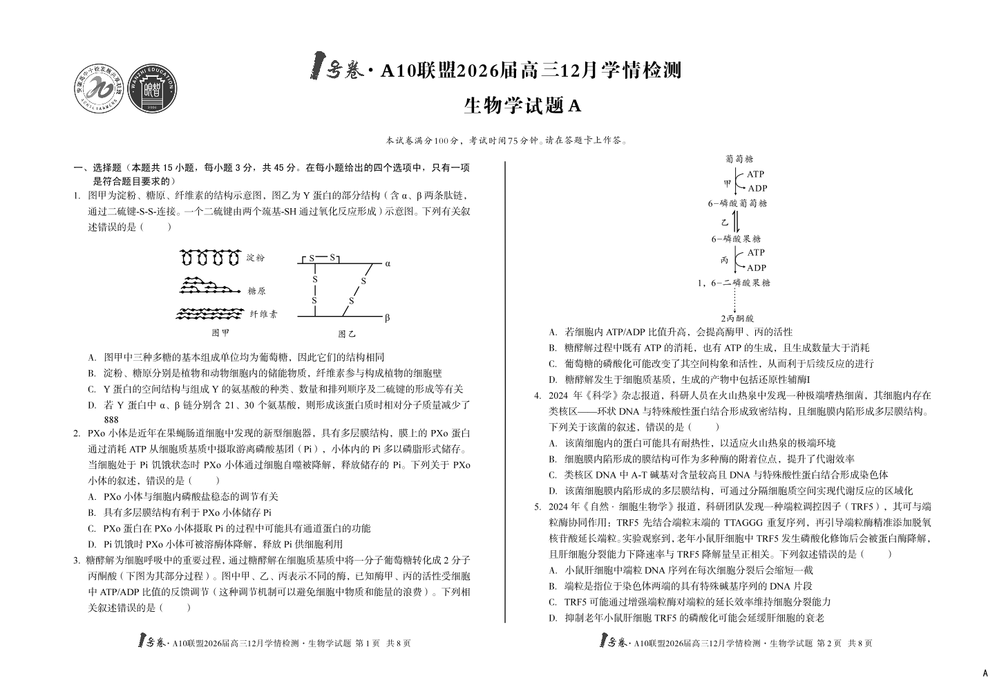 1号卷·A10联盟2026届高三12月学情检测 生物A.pdf