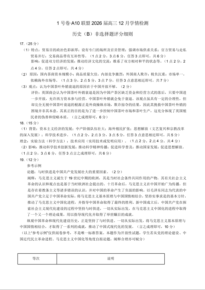 1号卷·A10联盟2026届高三12月学情检测 历史B非选择题评分细则.docx