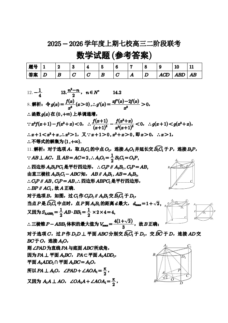 重庆市七校联盟2026届高三二阶段12月联考 数学答案.pdf