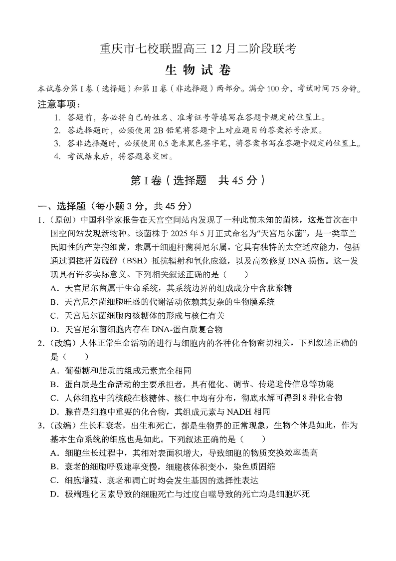 重庆市七校联盟2026届高三二阶段12月联考 生物.pdf