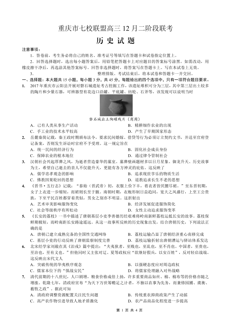重庆市七校联盟2026届高三二阶段12月联考 历史.pdf