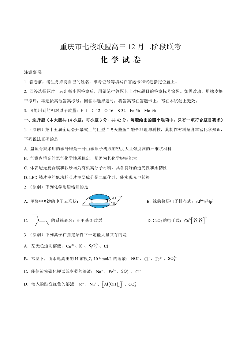 重庆市七校联盟2026届高三二阶段12月联考 化学.pdf