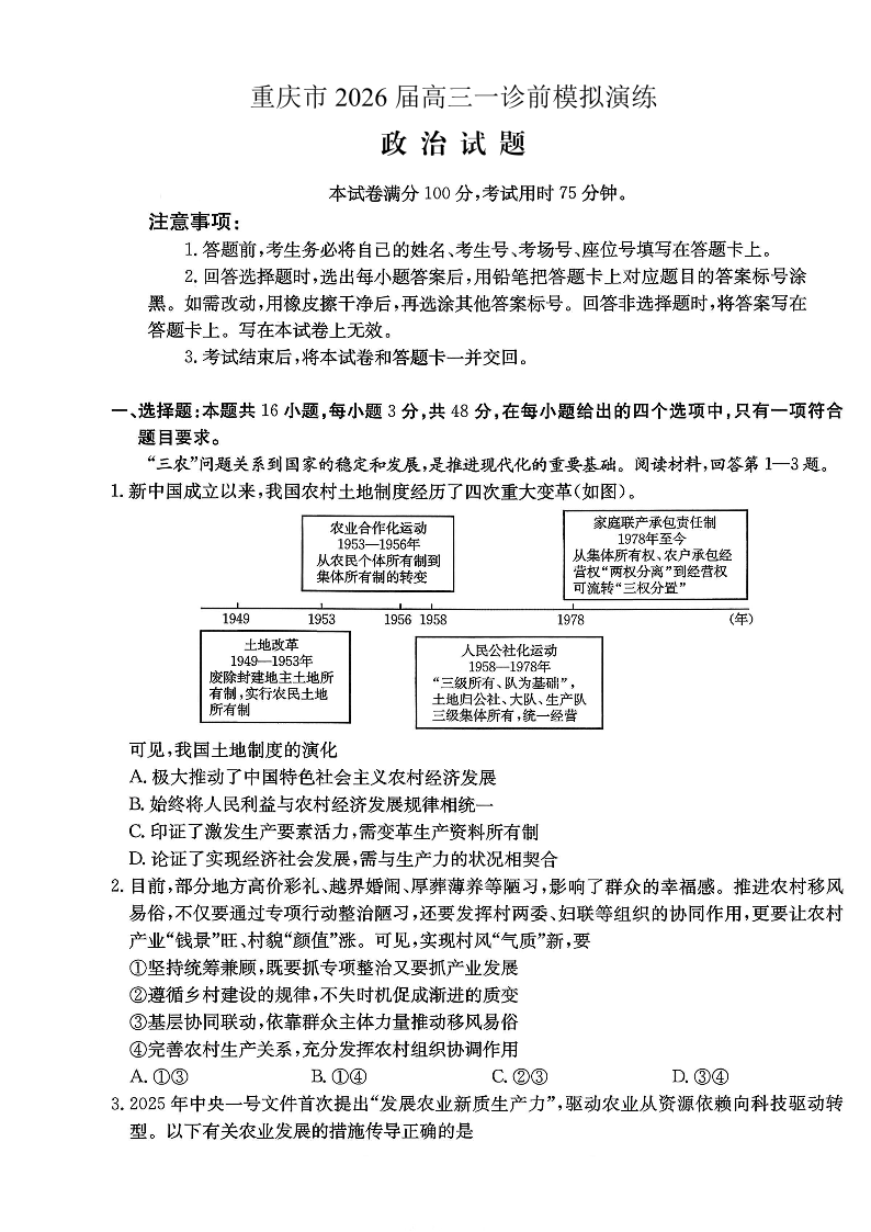 重庆市好教育联盟2026届高三一诊前模拟演练 政治.pdf