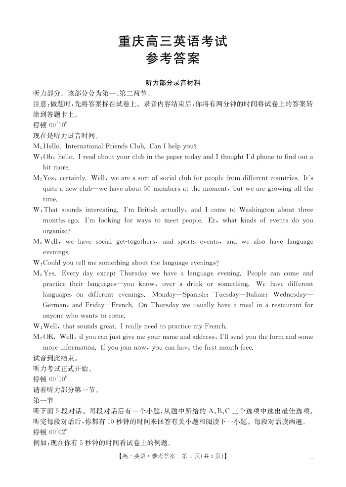 重庆市好教育联盟2026届高三一诊前模拟演练 英语答案.pdf