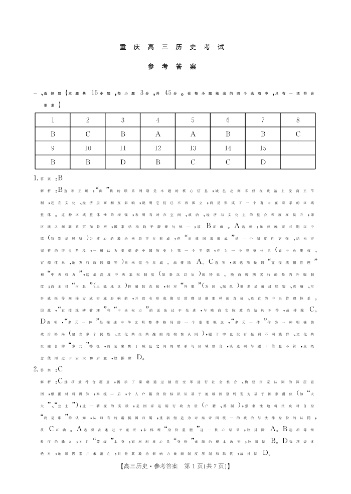 重庆市好教育联盟2026届高三一诊前模拟演练 历史答案.pdf