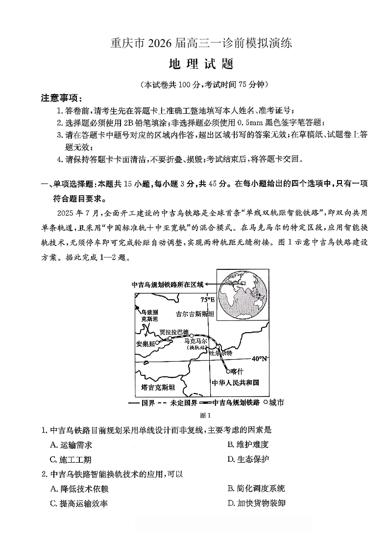 重庆市好教育联盟2026届高三一诊前模拟演练 地理.pdf