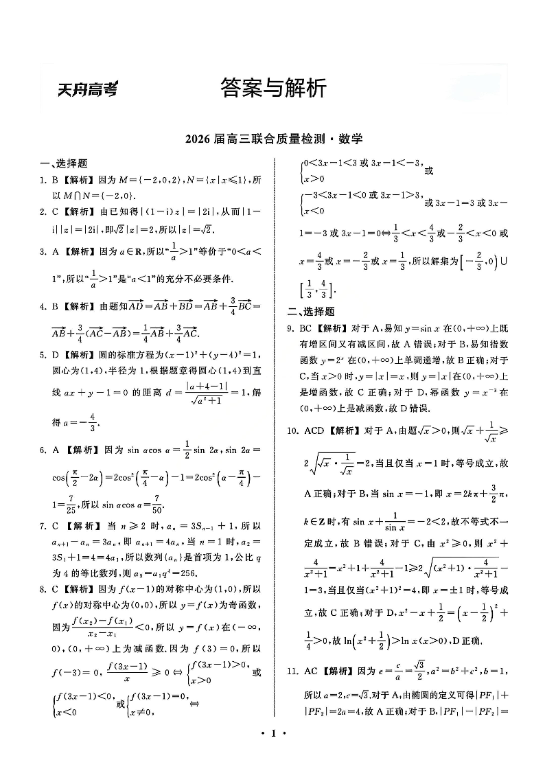 陕西省·天舟高考2026届高三12月联合质量检测 数学答案.pdf