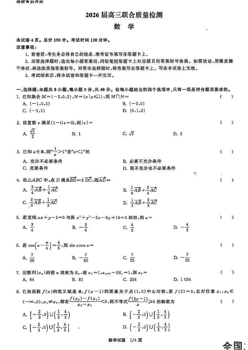 陕西省·天舟高考2026届高三12月联合质量检测 数学.pdf