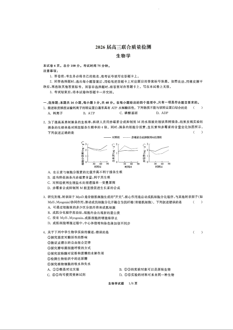 陕西省·天舟高考2026届高三12月联合质量检测 生物.docx