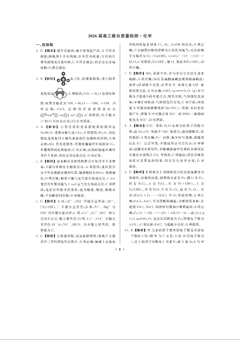 陕西省·天舟高考2026届高三12月联合质量检测 化学答案.docx