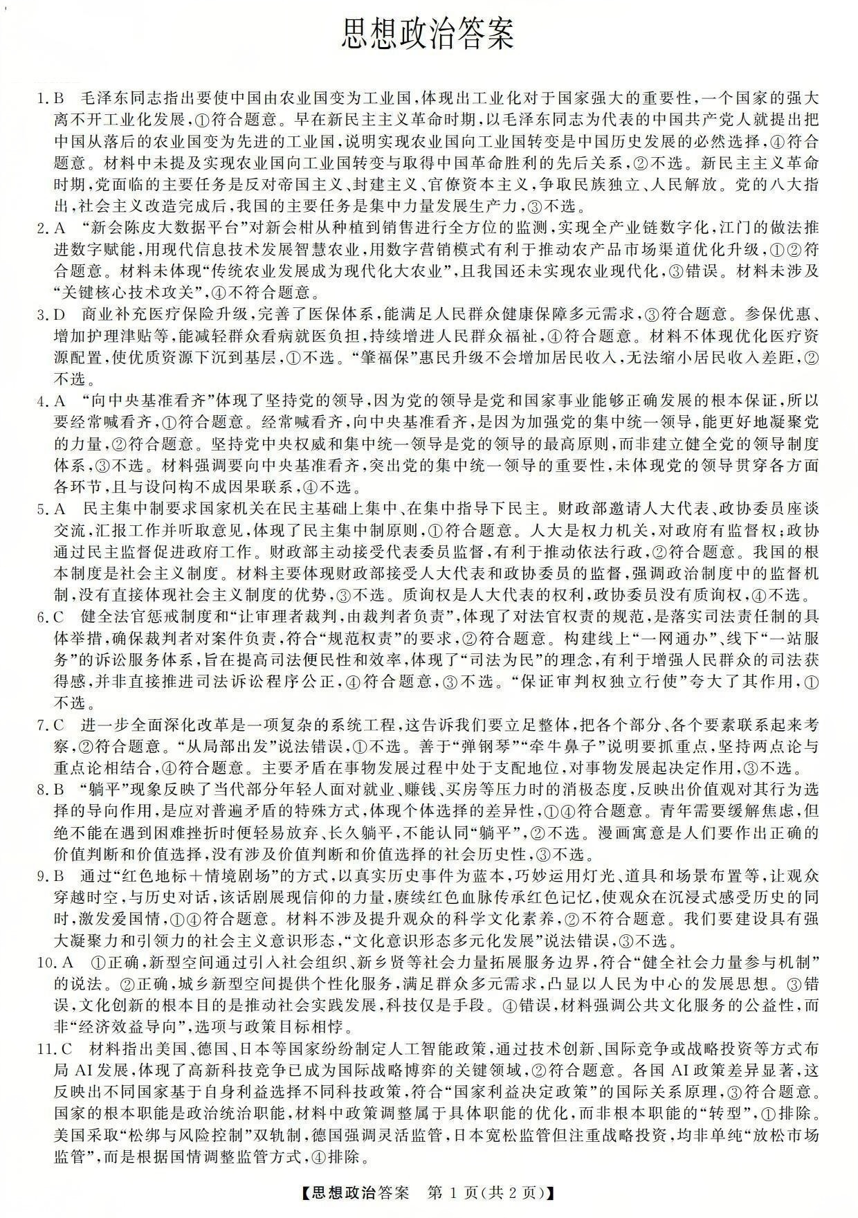 三重教育2025-2026学年高三西北四省12月高考适应性考试 政治答案.pdf