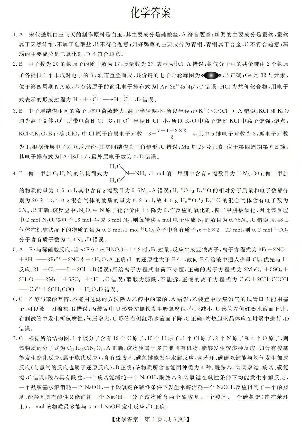 三重教育2025-2026学年高三西北四省12月高考适应性考试 化学答案.pdf