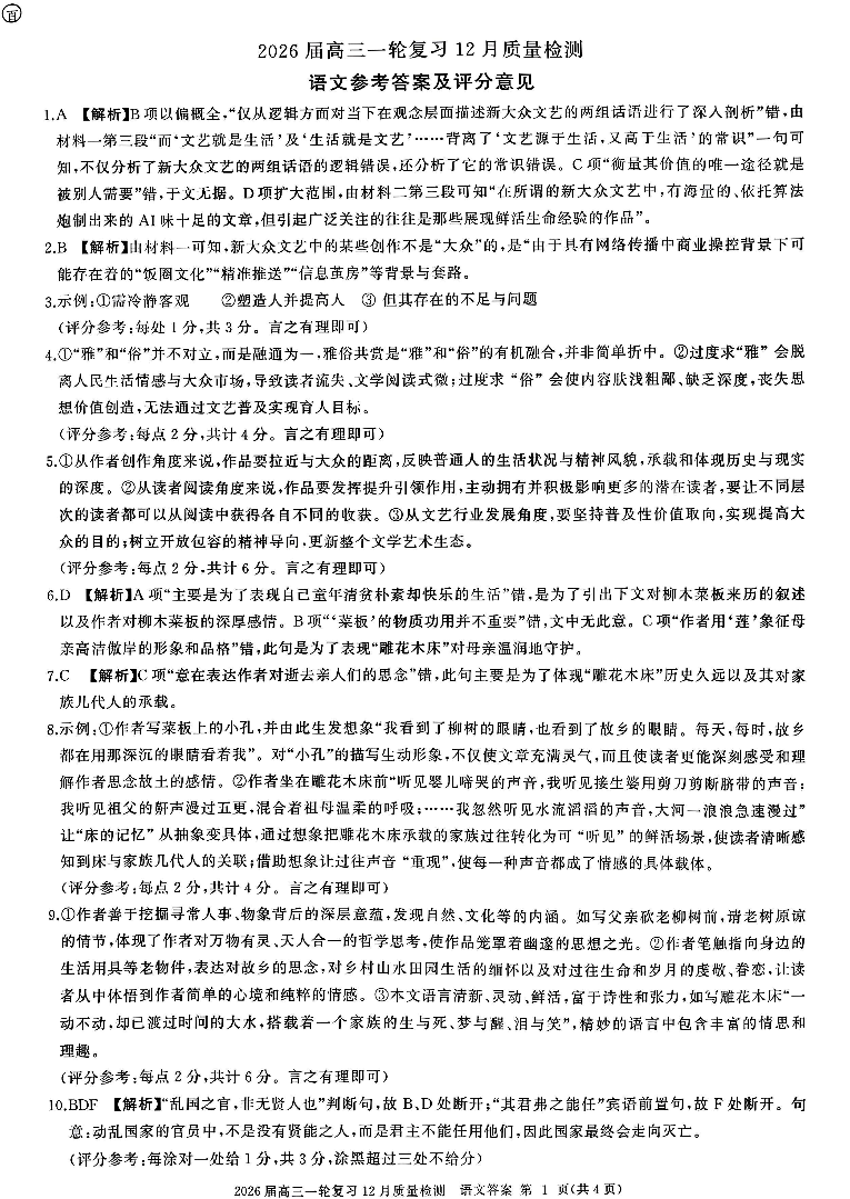 百师联盟2026届高三一轮复习12月质量检测 语文答案.pdf