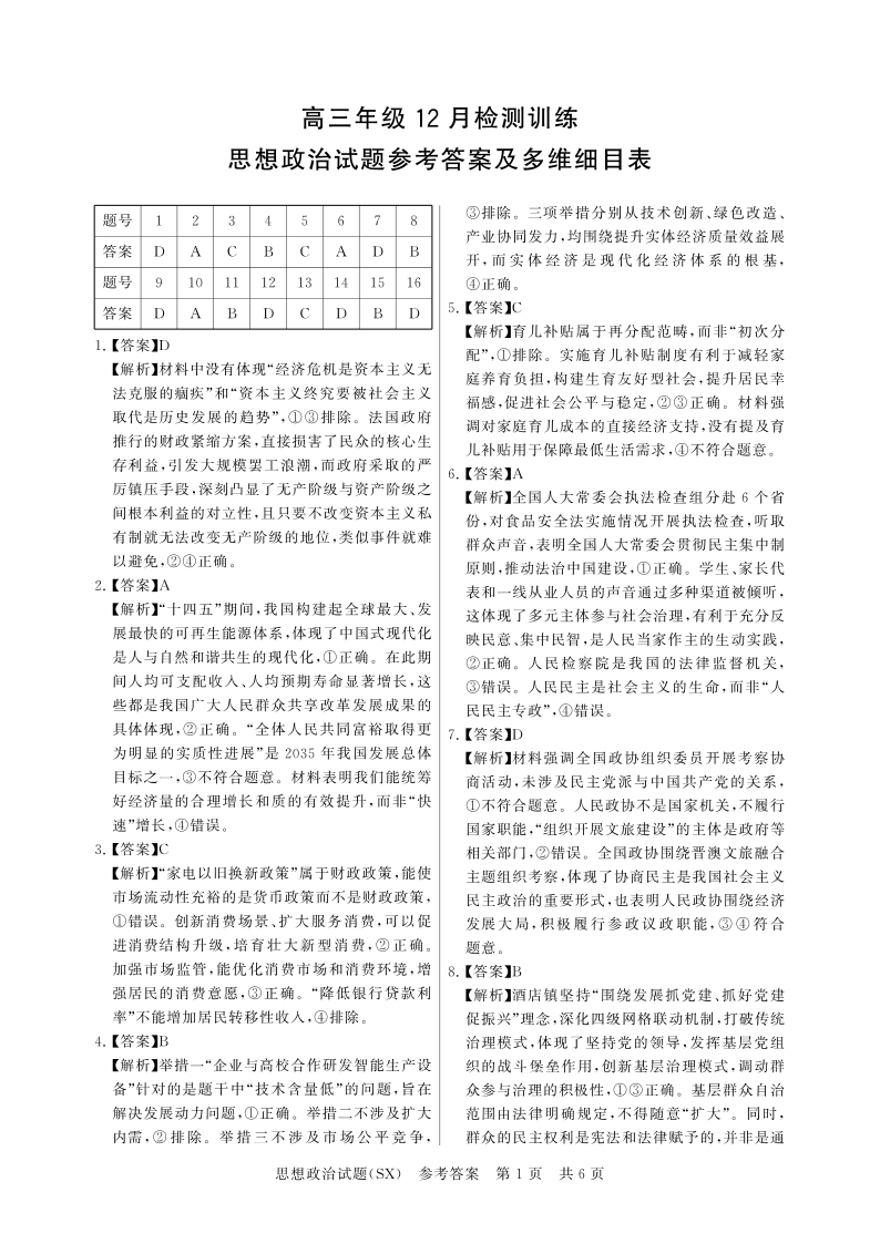 T8联考2026届高三年级12月检测训练 政治(山西)答案.pdf