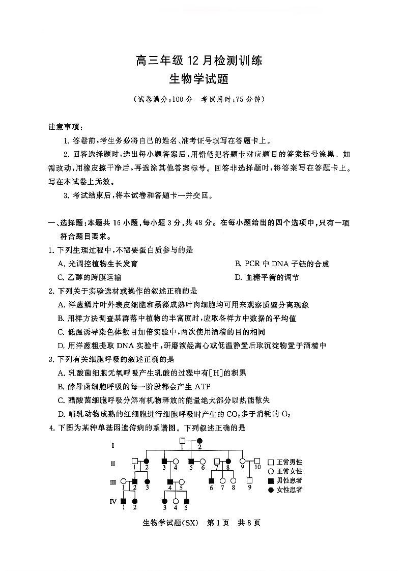 T8联考2026届高三年级12月检测训练 生物(山西).pdf