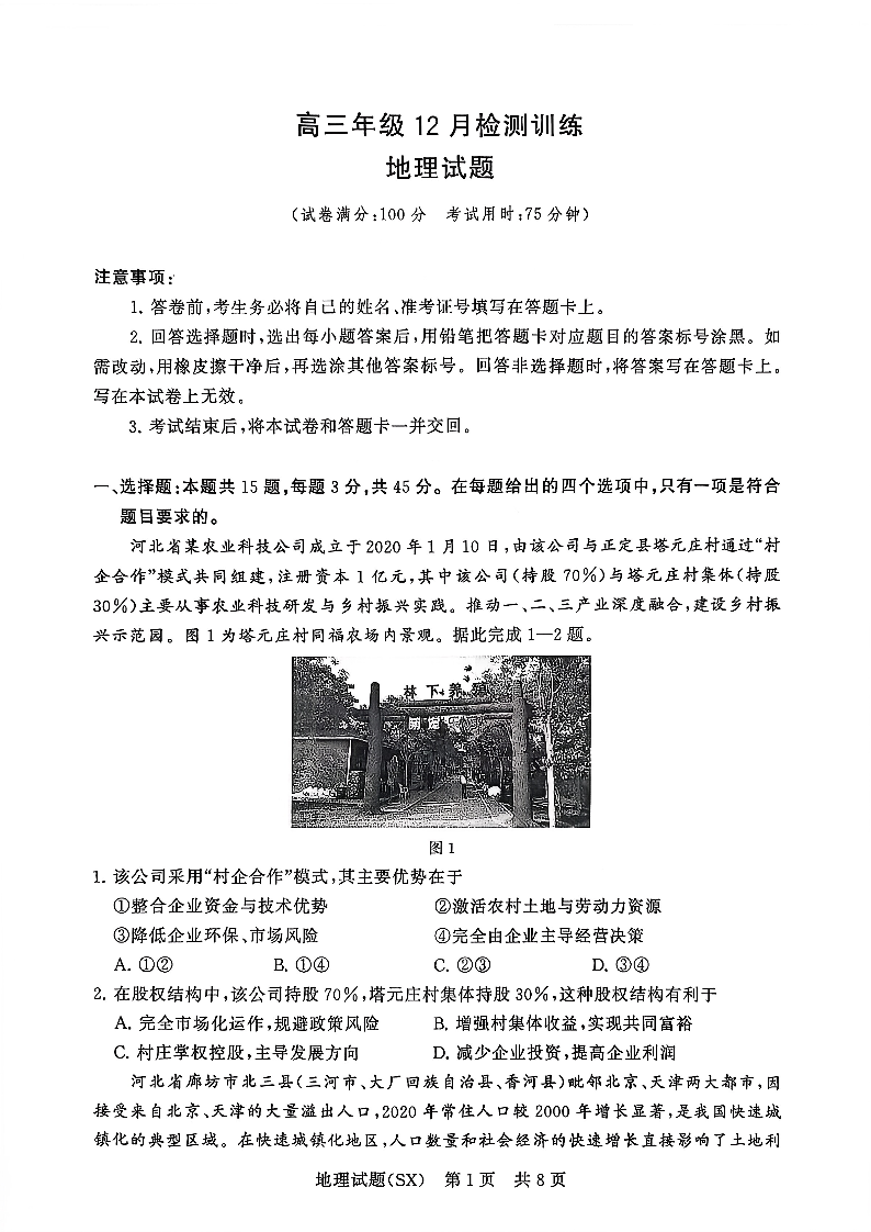 T8联考2026届高三年级12月检测训练 地理(山西).pdf