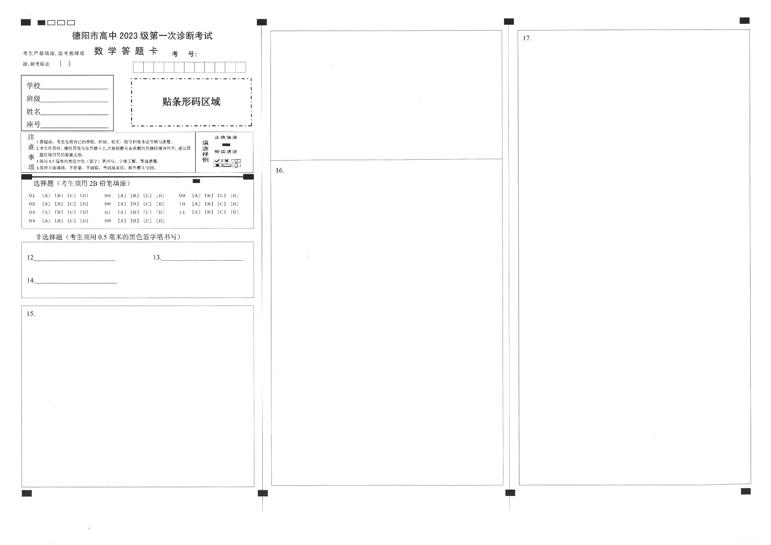 德阳市高中2023级第一次诊断考试 数学答题卡.pdf