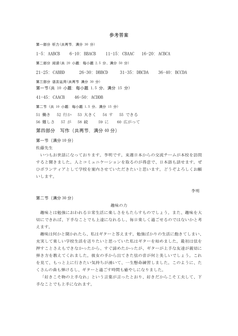德阳市高中2023级第一次诊断考试 日语答案.pdf