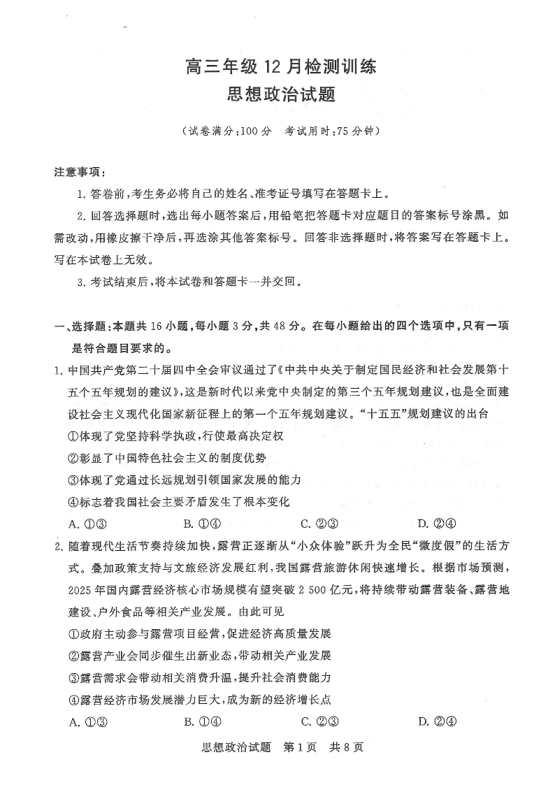 T8联考2026届高三年级12月检测训练 政治(湖北).pdf