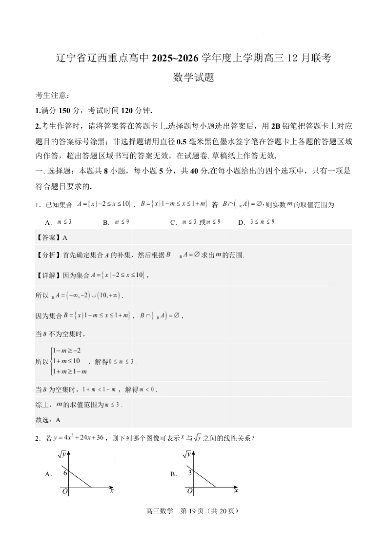 辽宁省辽西重点高中2025~2026学年度上学期高三12月联考 数学答案.docx
