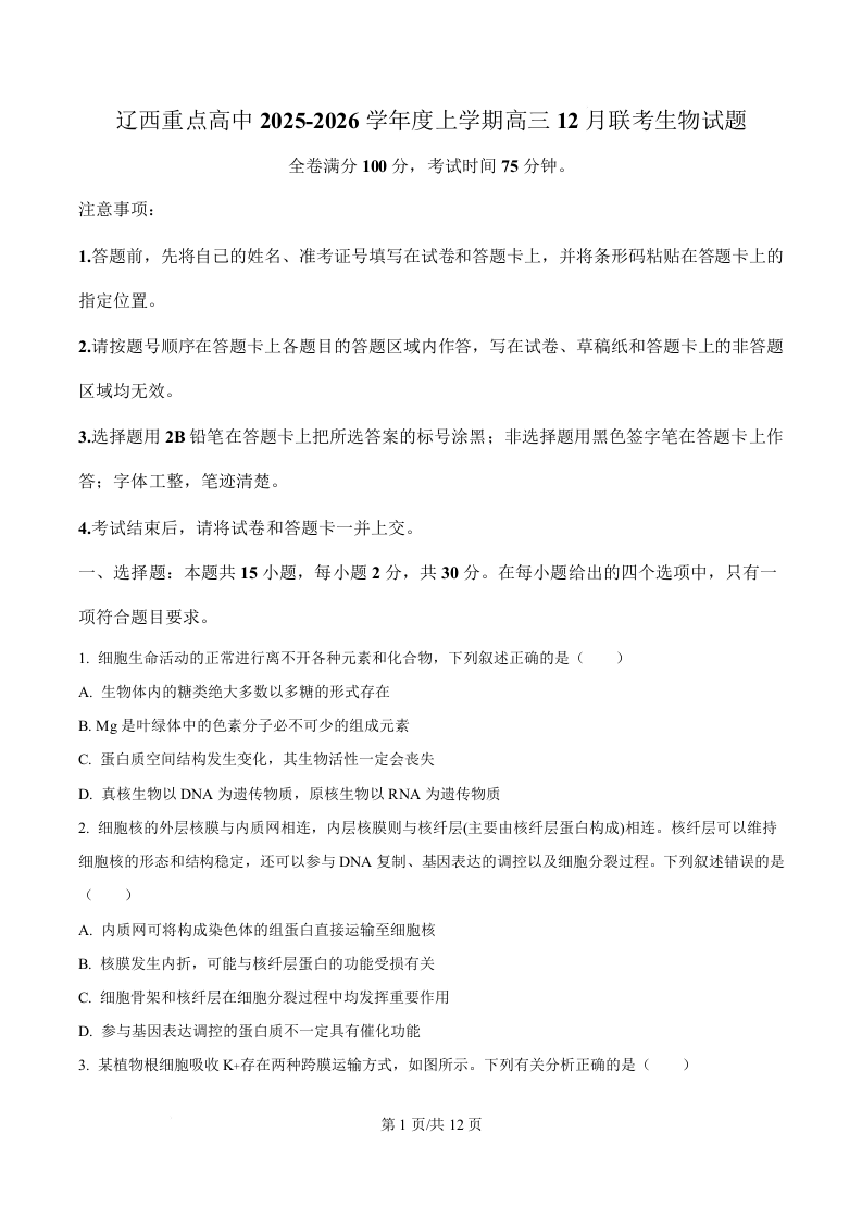辽宁省辽西重点高中2025~2026学年度上学期高三12月联考 生物.docx