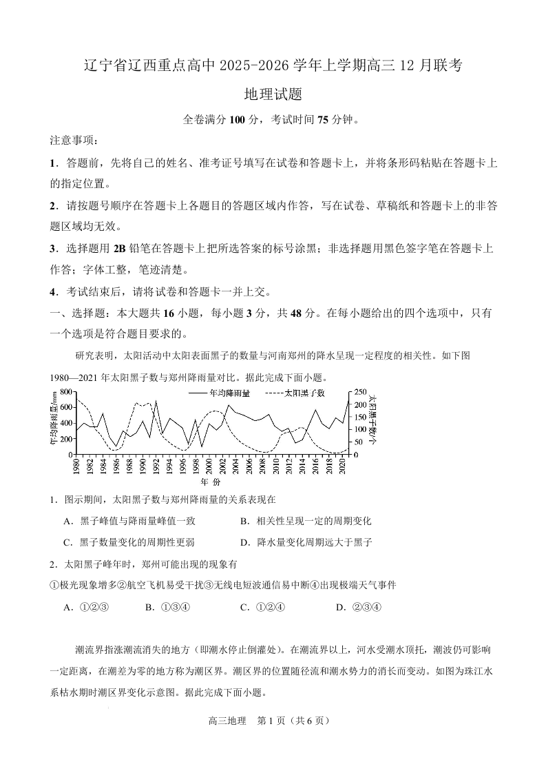 辽宁省辽西重点高中2025~2026学年度上学期高三12月联考 地理.docx