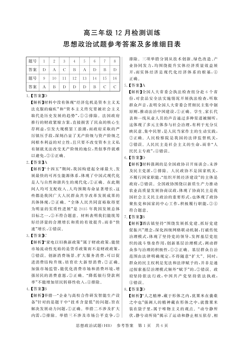 T8联考2026届高三年级12月检测训练 政治(河北)答案.pdf