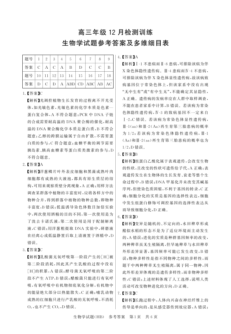 T8联考2026届高三年级12月检测训练 生物(河北)答案.pdf