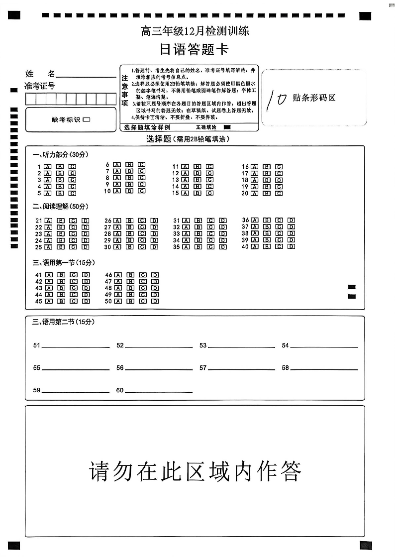 T8联考2026届高三年级12月检测训练 日语答题卡.pdf