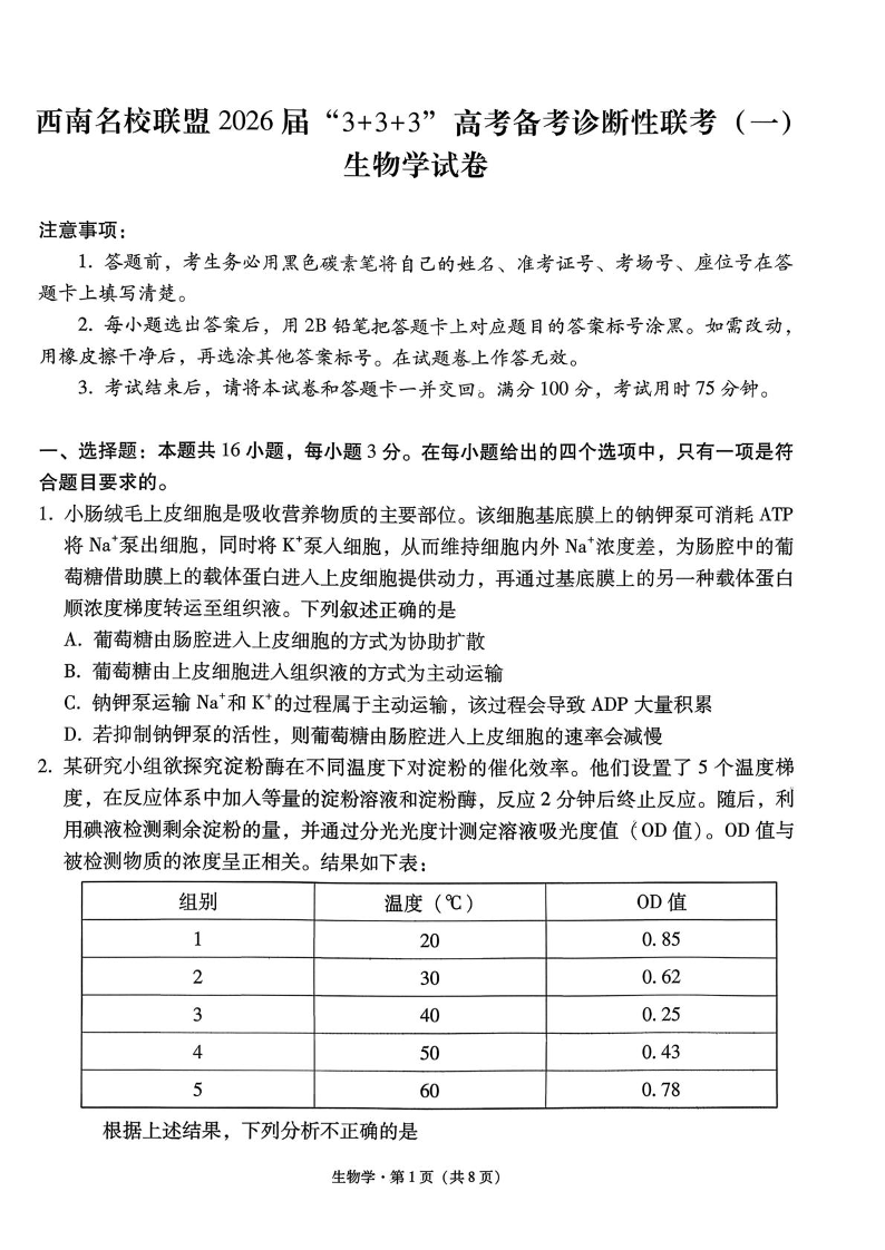 西南名校联盟2026届“3+3+3”高考备考诊断性联考(一)生物.pdf