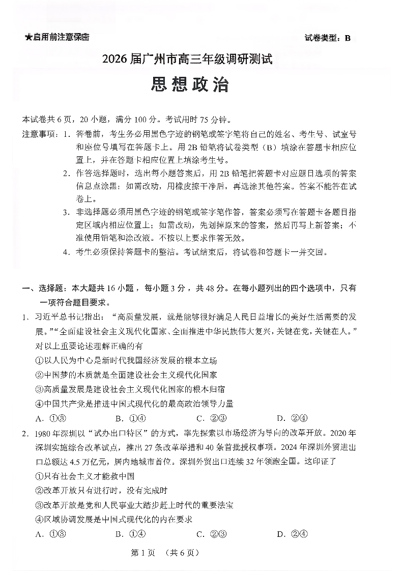 2026届广州市高三年级调研测试 政治.pdf