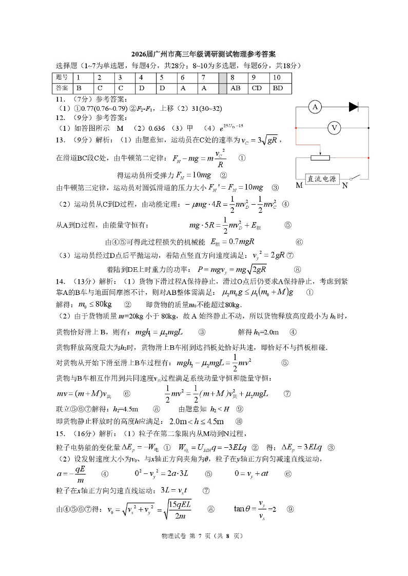 2026届广州市高三年级调研测试 物理答案.pdf