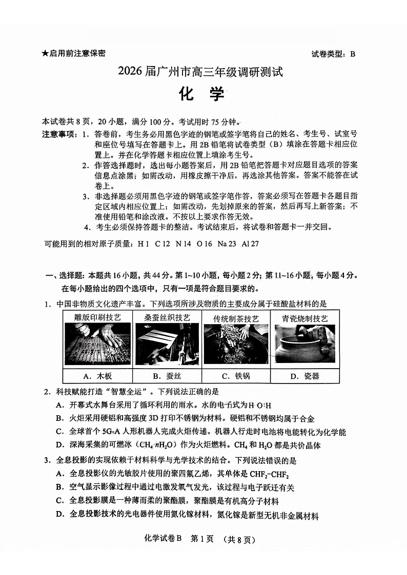 2026届广州市高三年级调研测试 化学.pdf