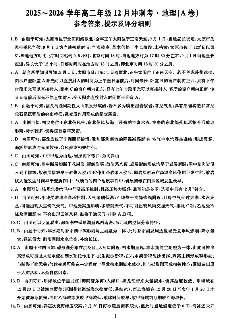 地理答案-25-26学年山西高二12月卓越联盟联考.pdf