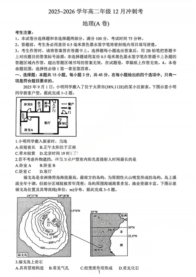地理试卷-25-26学年山西高二12月卓越联盟联考.pdf