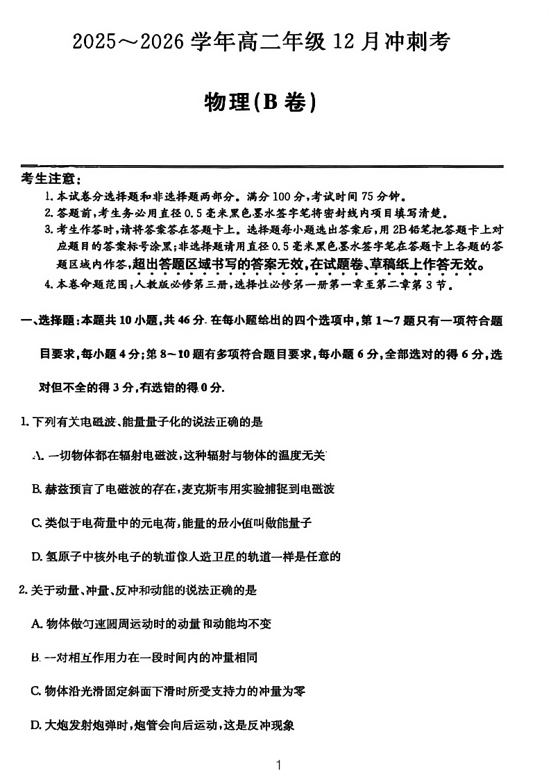 物理试卷-25-26学年山西高二12月卓越联盟联考.pdf