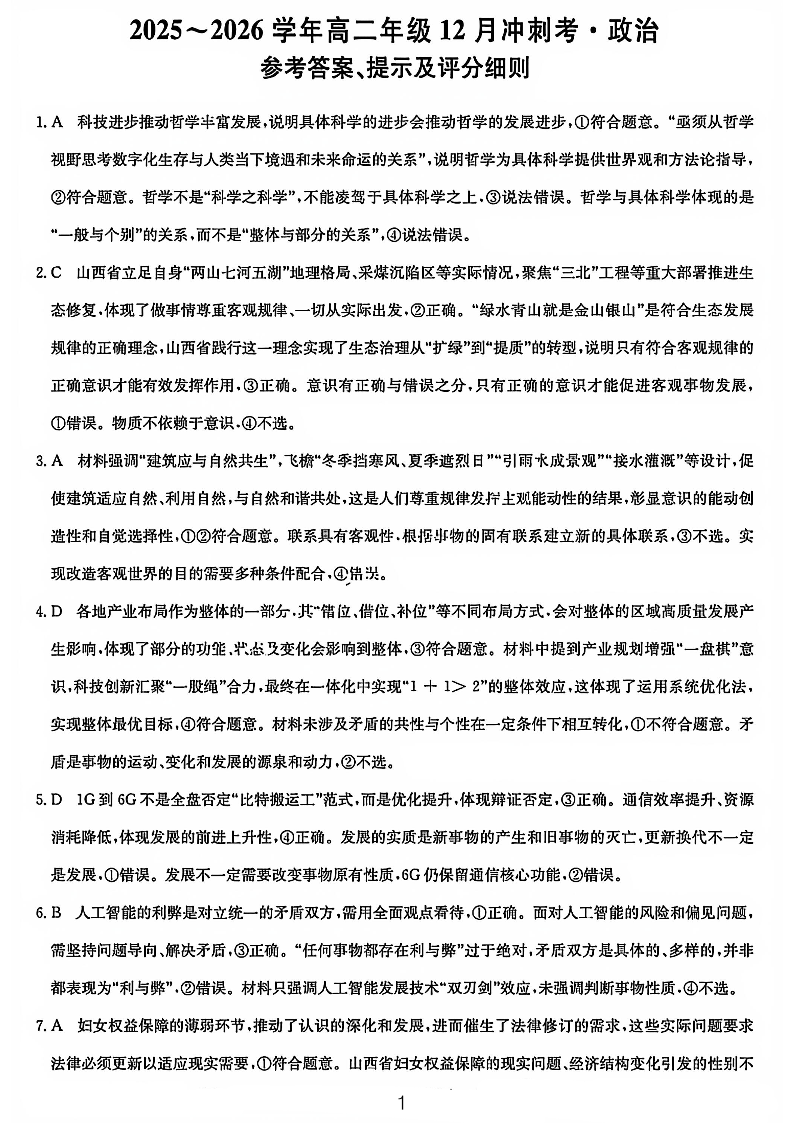 政治答案-25-26学年山西高二12月卓越联盟联考.pdf