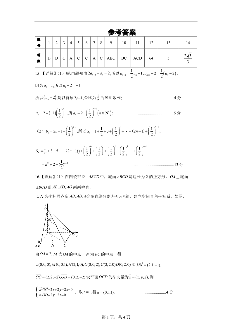 玉溪一中2025-2026学年高二年级上学期第二次月考 数学答案.pdf