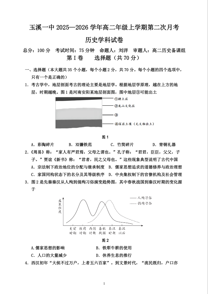玉溪一中2025-2026学年高二年级上学期第二次月考 历史.docx