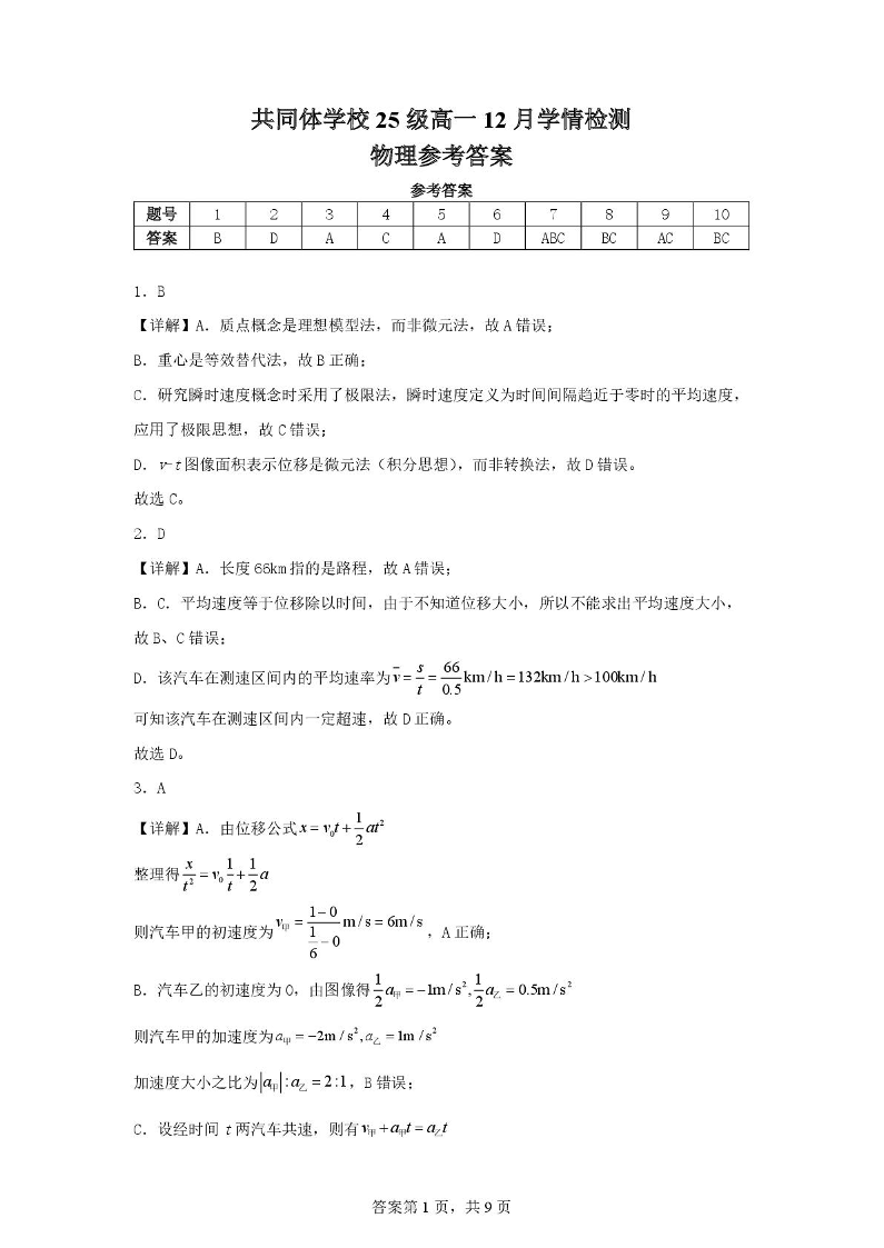 共同体学校25级高一12月学情检测 物理答案.pdf