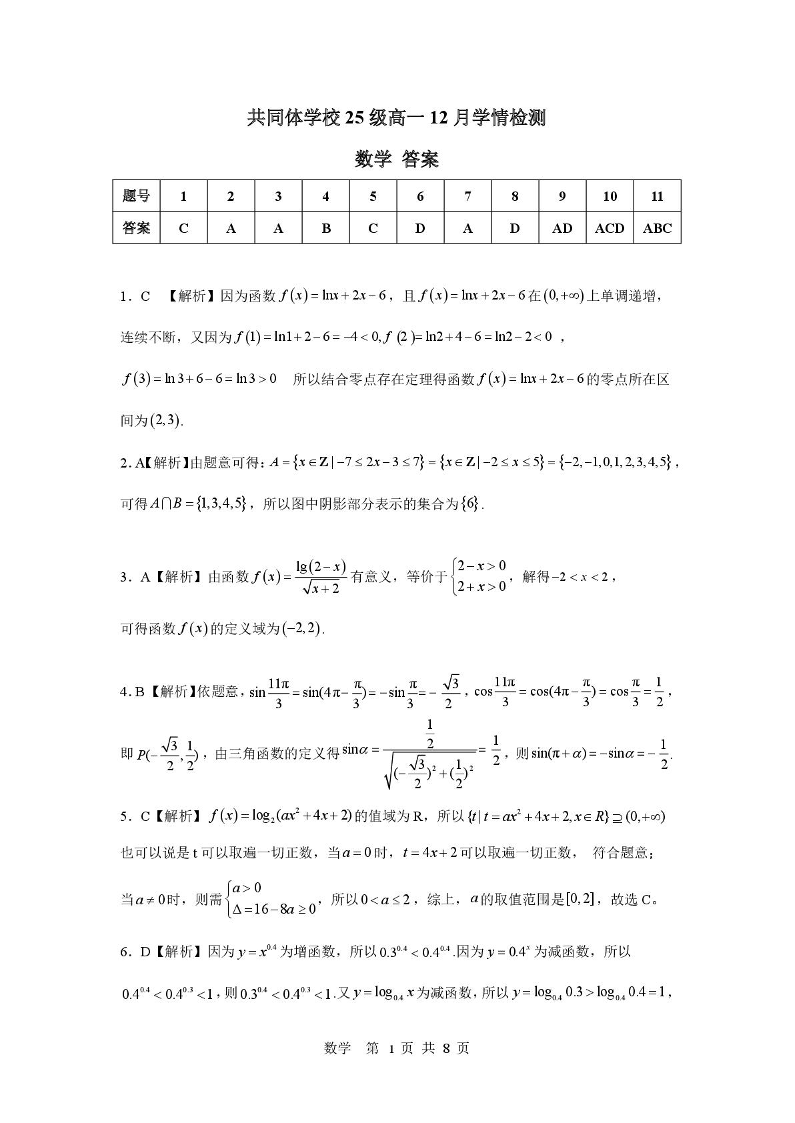 共同体学校25级高一12月学情检测 数学答案.pdf