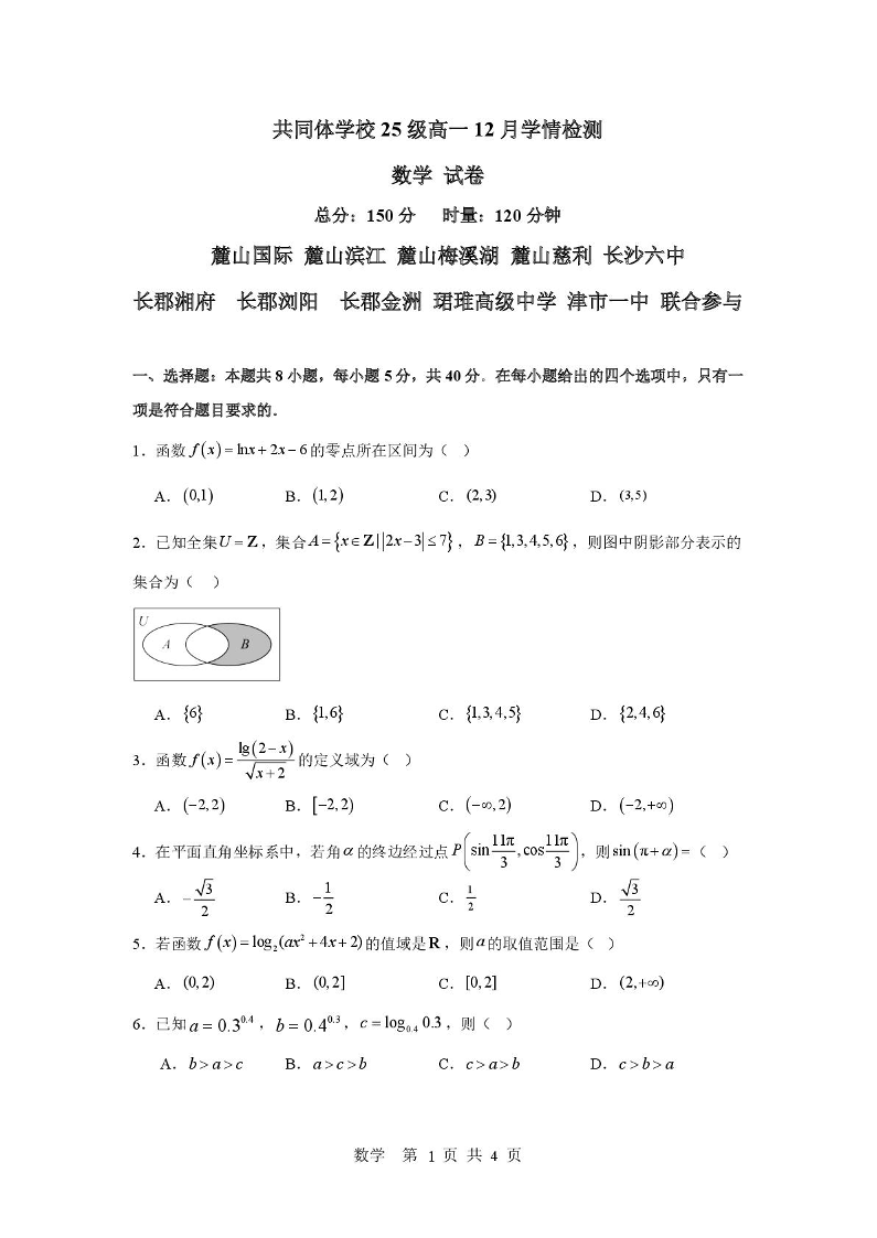 共同体学校25级高一12月学情检测 数学.pdf