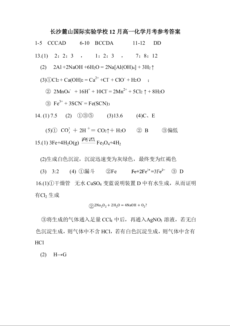 共同体学校25级高一12月学情检测 化学答案.docx