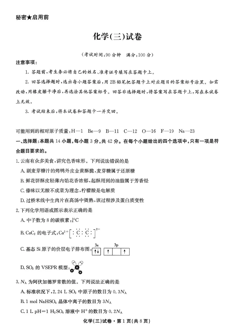 云南省名校联盟2026届高三上学期第三次联考 化学.pdf