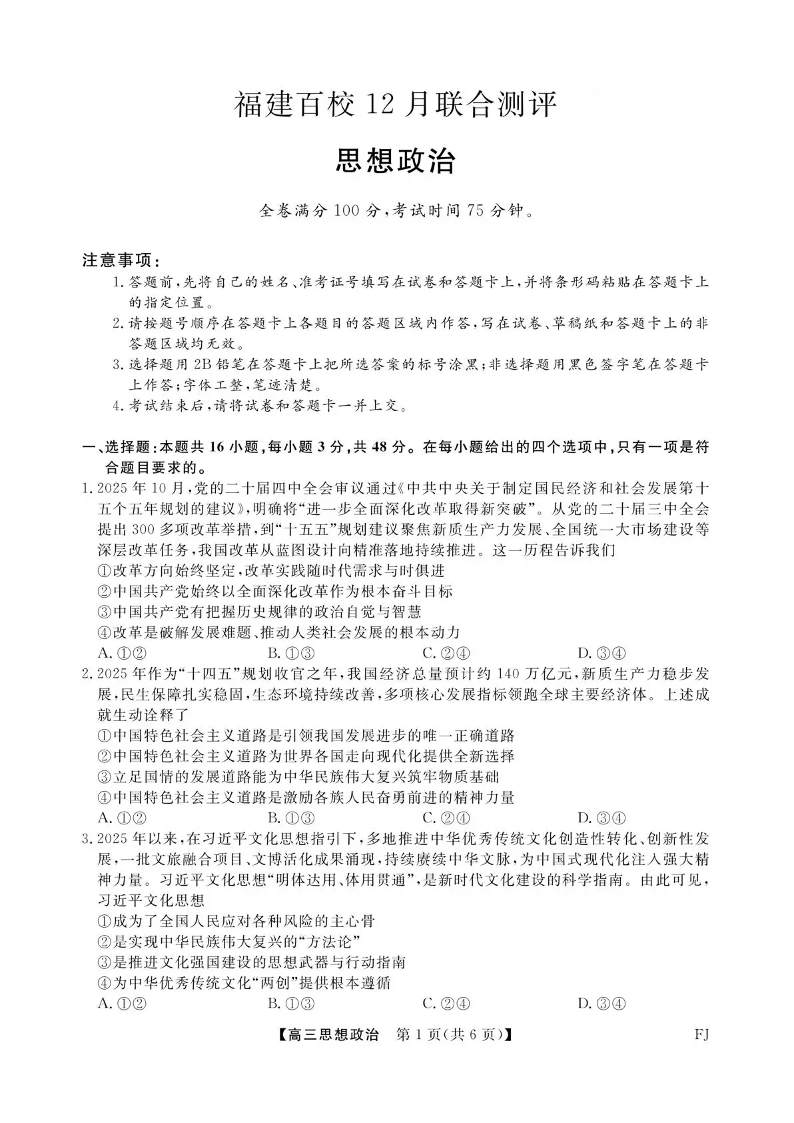 福建省百校2026届高三上学期12月联合测评 政治.pdf