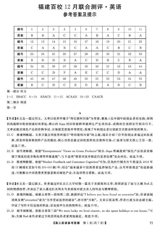 福建省百校2026届高三上学期12月联合测评 英语答案.pdf